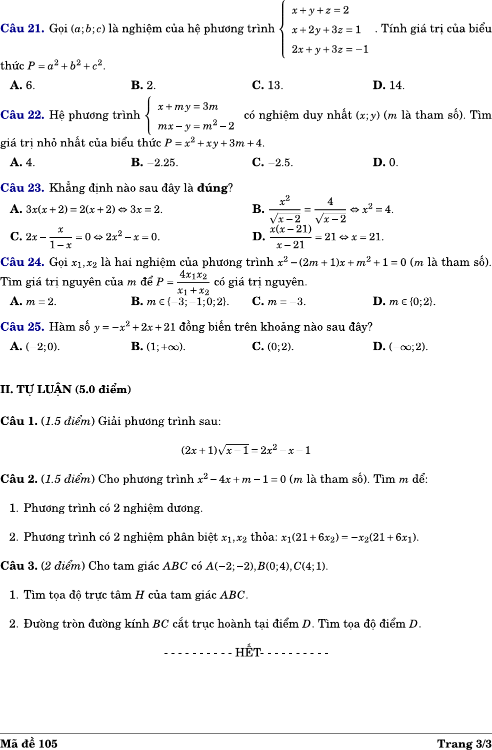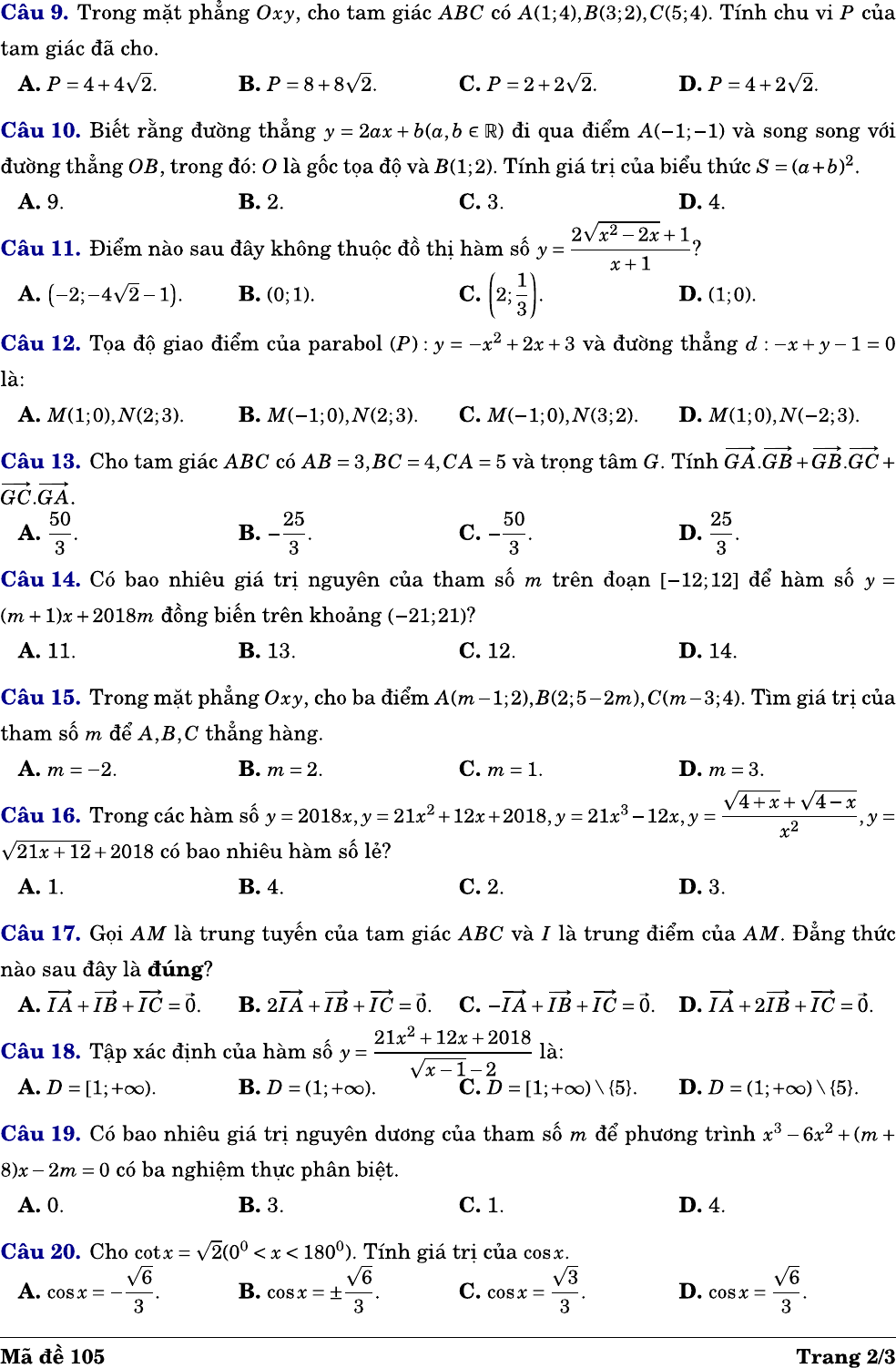 - Đề thi học kì 1 lớp 10 môn Toán năm 2018 - 2019 trường THPT Hoa Lư A - Ninh Bình
