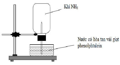 Câu 13: Cho thí nghiệm như hình vẽ, bên trong bình có chứa khí NH3, trong chậu thủy tinh chứa nước có nhỏ vài giọt phenolphtalein.