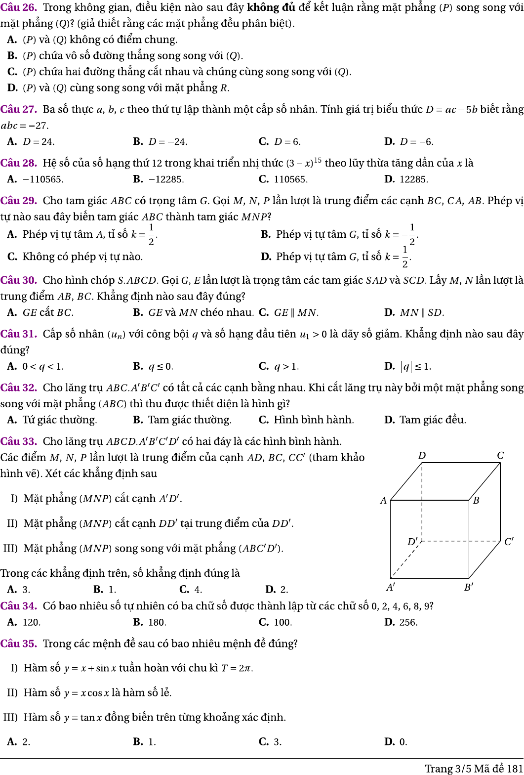 - Đề thi học kì 1 Toán 11 năm 2018 - 2019 trường THPT chuyên ĐHSP - Hà Nội