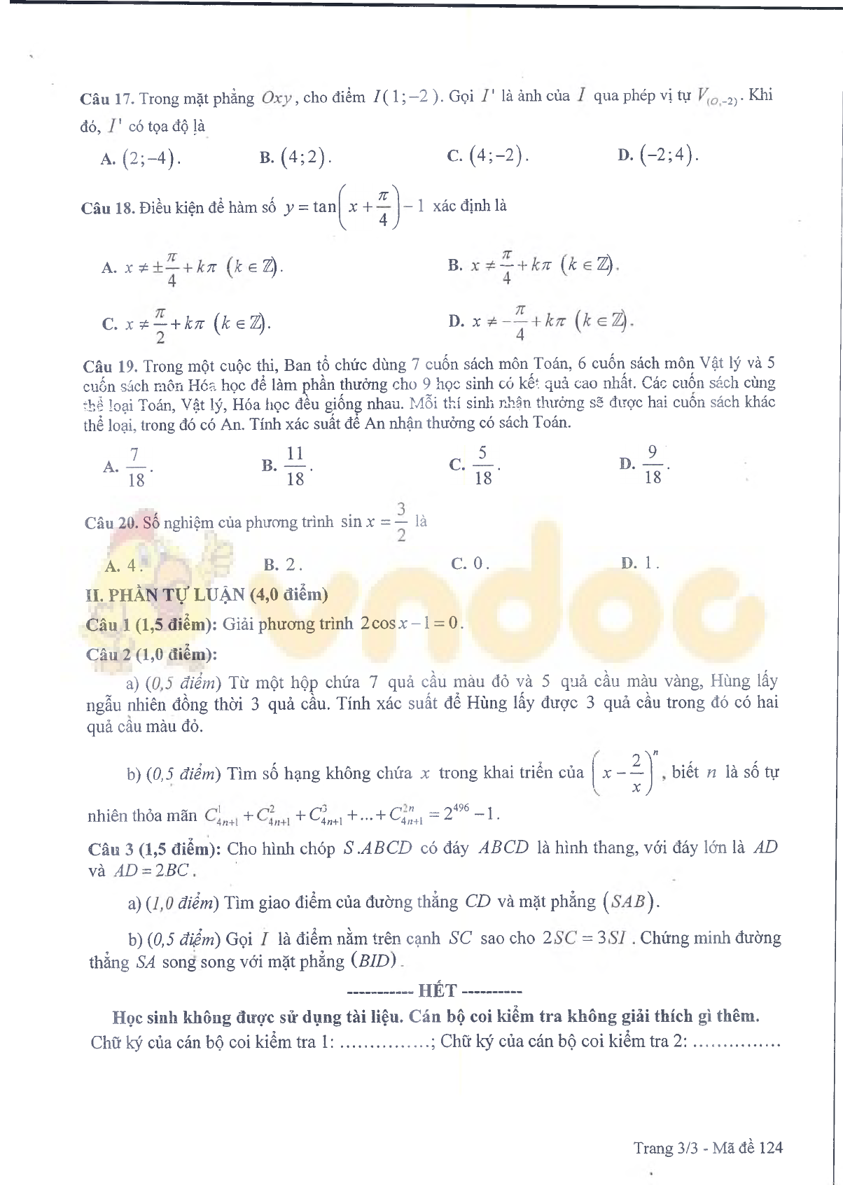Trên đây VnDoc.com vừa giới thiệu tới bạn đọc Đề thi học kì 1 lớp 11 môn Toán Sở GDKHCN Bạc Liêu năm học 2019-2020, mong rằng đây là tài liệu hữu ích giúp bạn đọc học tập tốt hơn. Mời bạn đọc cùng tham khảo thêm kiến thức một số môn Ngữ văn 11, Tiếng Anh 11, đề thi học kì 2 lớp 11...
