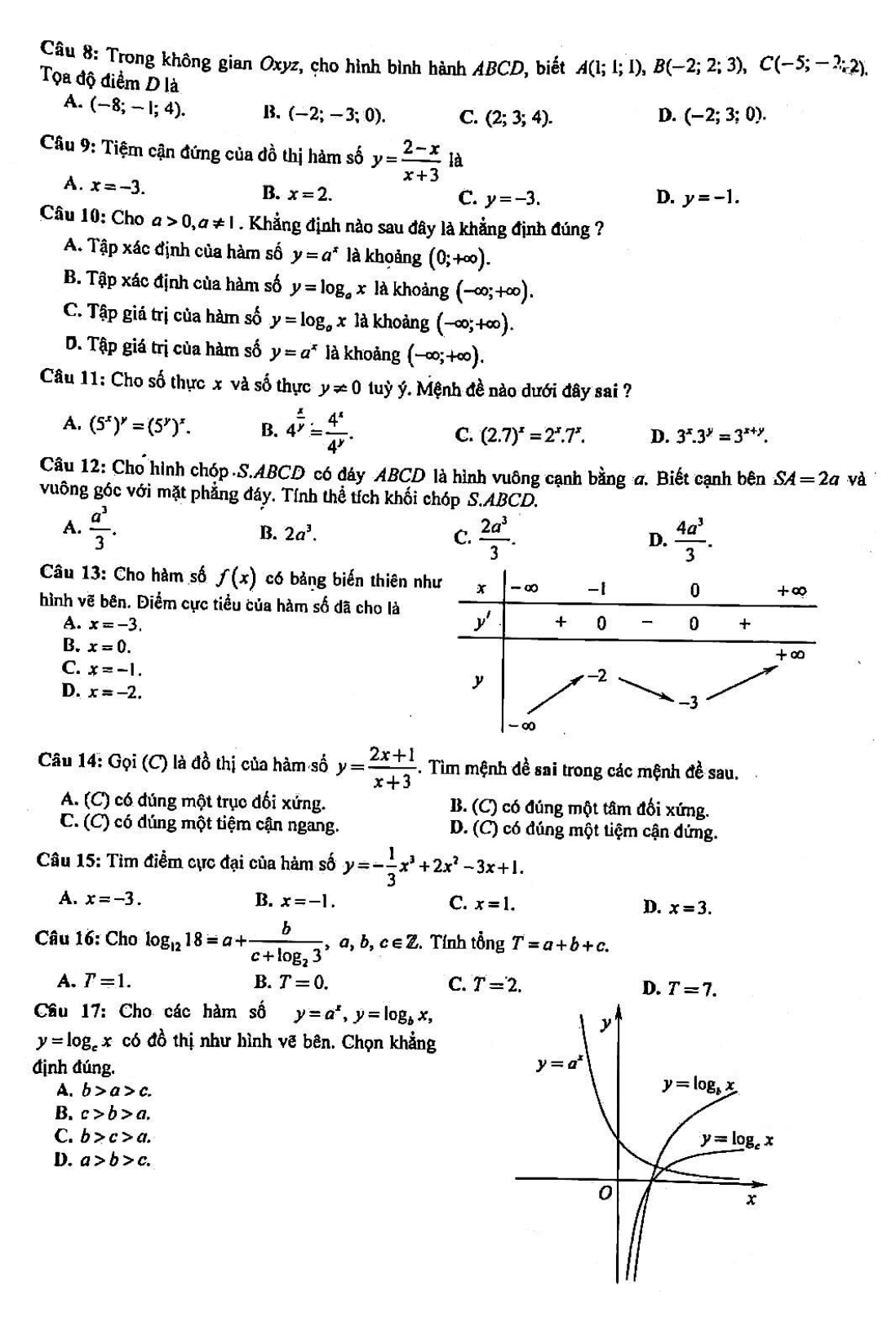 - Bộ đề thi học kì 1 lớp 12 môn Toán năm 2018 - 2019 (Số 1)