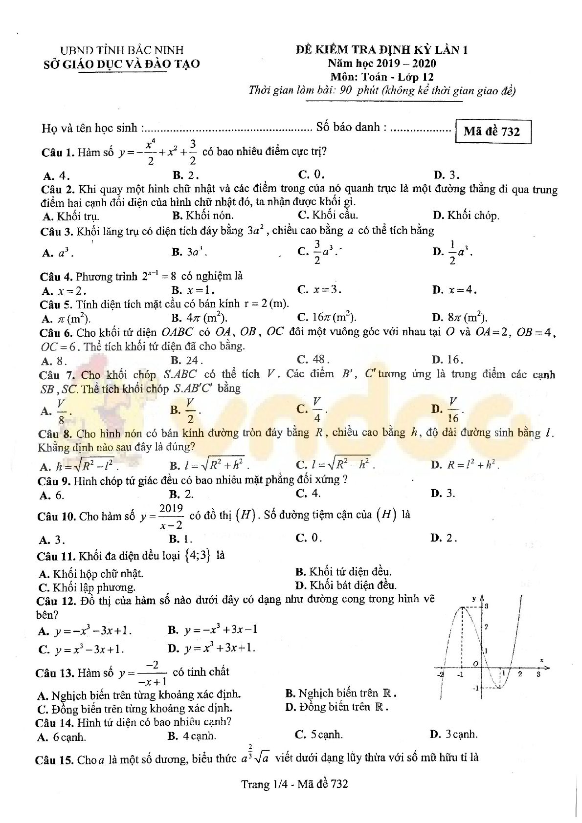 Đề thi học kì 1 lớp 12 môn Toán Sở GD&ĐT Bắc Ninh năm học 2019-2020