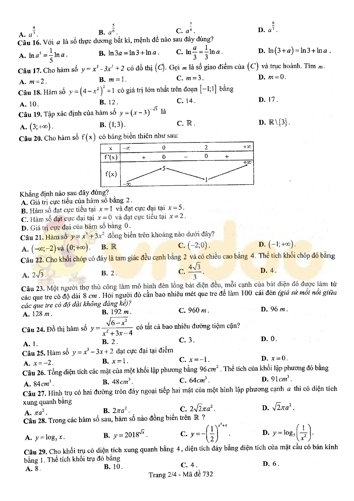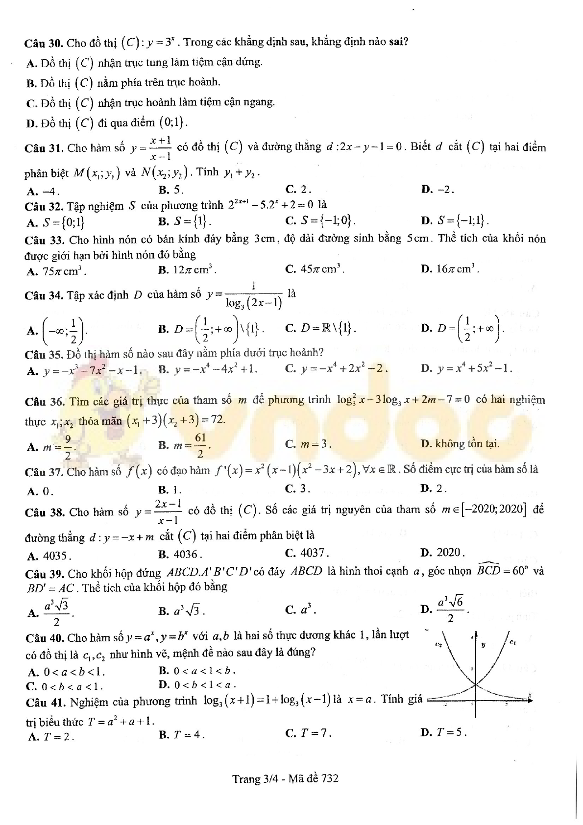 Đề thi học kì 1 lớp 12 môn Toán Sở GD&ĐT Bắc Ninh năm học 2019-2020 vừa được VnDoc.com sưu tập và xin gửi tới bạn đọc để bạn đọc cùng tham khảo. Đề thi gồm có 4 trang, tổng hợp 50 câu trắc nghiệm và thí sinh làm đề trong thời gian 90 phút. Đề thi được biên soạn giống với các đề thi THPT Quốc gia các năm về trước. Mời bạn đọc cùng tham khảo chi tiết tại đây.