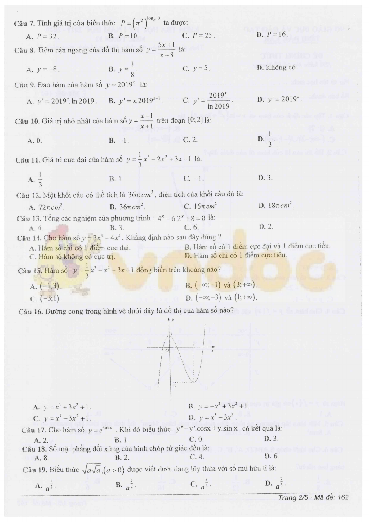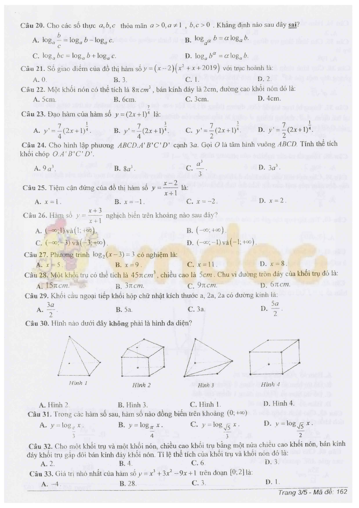 - Đề thi học kì 1 lớp 12 môn Toán trường THPT Phan Đình Phùng, Hà Nội năm học 2019-2020