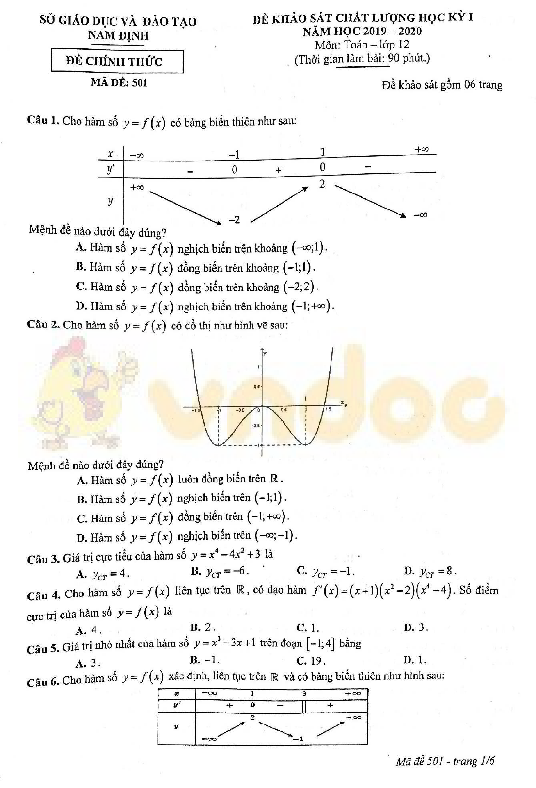 VnDoc.com vừa giới thiệu tới bạn đọc Đề thi học kì 1 lớp 12 môn Toán Sở GD&ĐT Nam Định năm học 2019-2020, mong rằng qua đây bạn đọc có thể học tập tốt hơn nhé. Mời bạn đọc cùng tham khảo thêm kiến thức các môn Ngữ văn 12, Tiếng Anh 12, đề thi học kì 2 lớp 12...
