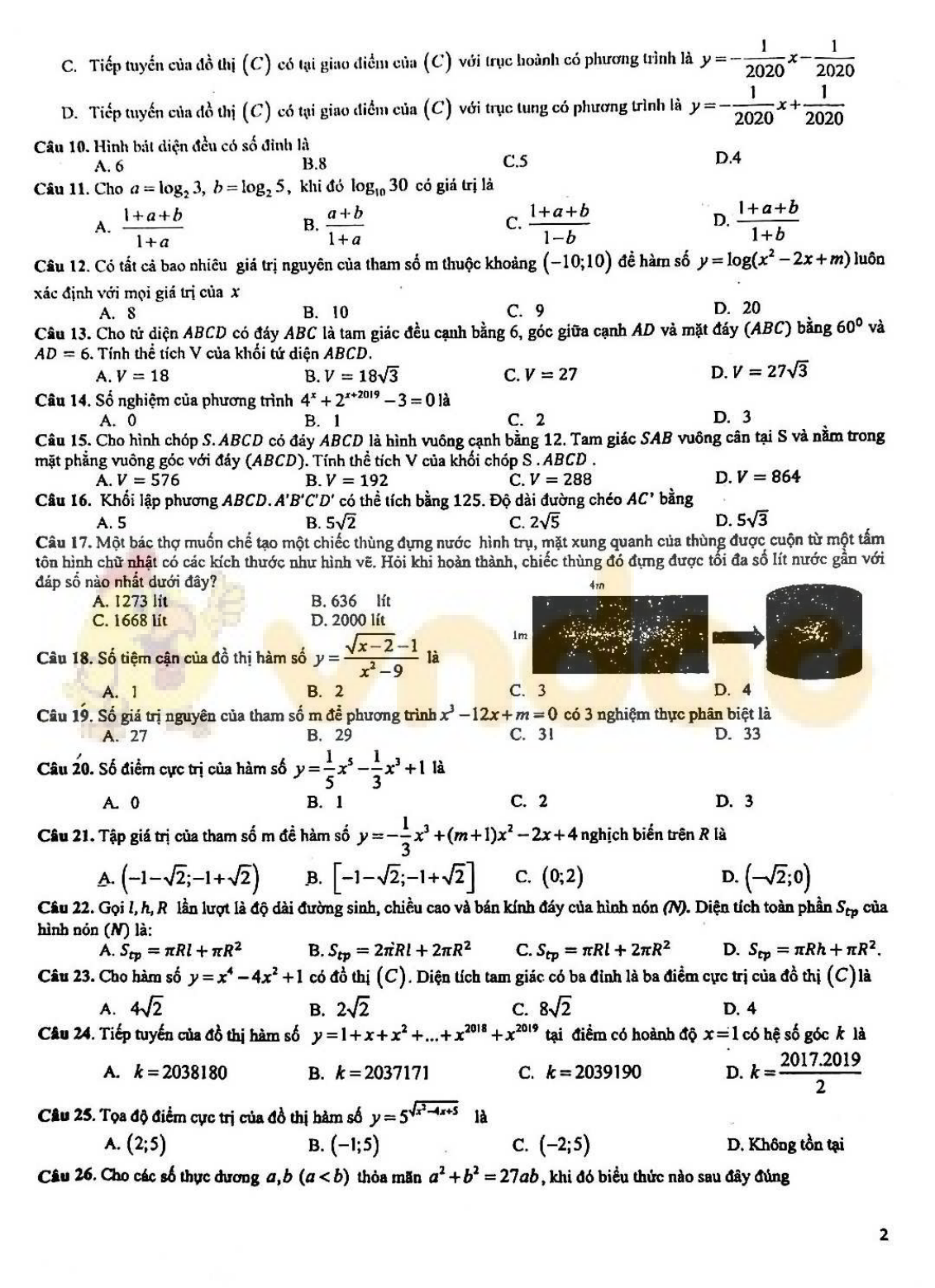 - Đề thi học kì 1 lớp 12 môn Toán trường THPT An Phước, Ninh Thuận năm học 2019-2020