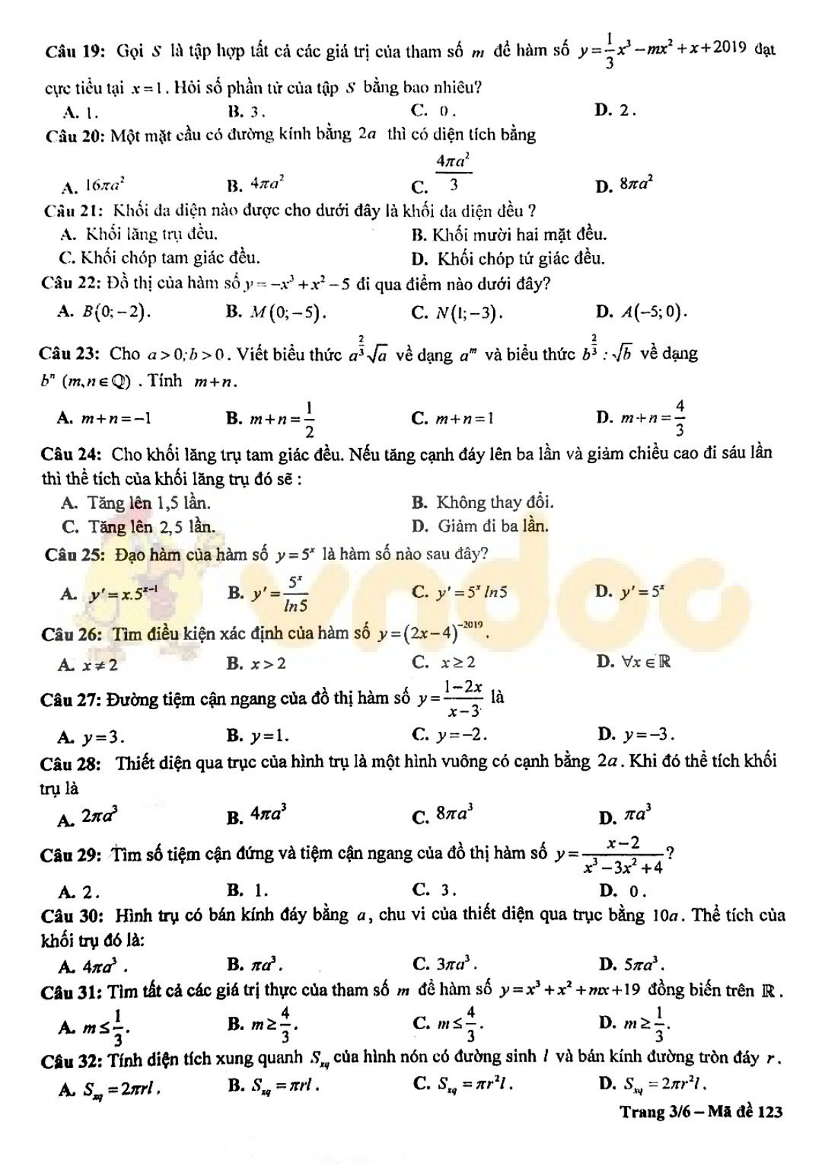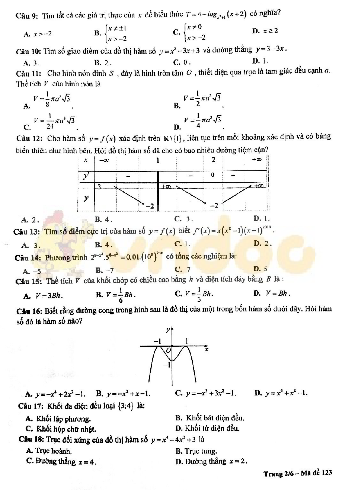 Đề thi học kì 1 lớp 12 môn Toán trường THPT Phan Đình Phùng, Hà Nội năm học 2019-2020 vừa được VnDoc.com biên soạn và xin gửi tới bạn đọc để bạn đọc cùng tham khảo. Đề thi gồm có 6 trang, tổng hợp 50 câu trắc nghiệm và thí sinh làm đề trong thời gian 90 phút. Mời bạn đọc cùng tham khảo chi tiết tại đây.