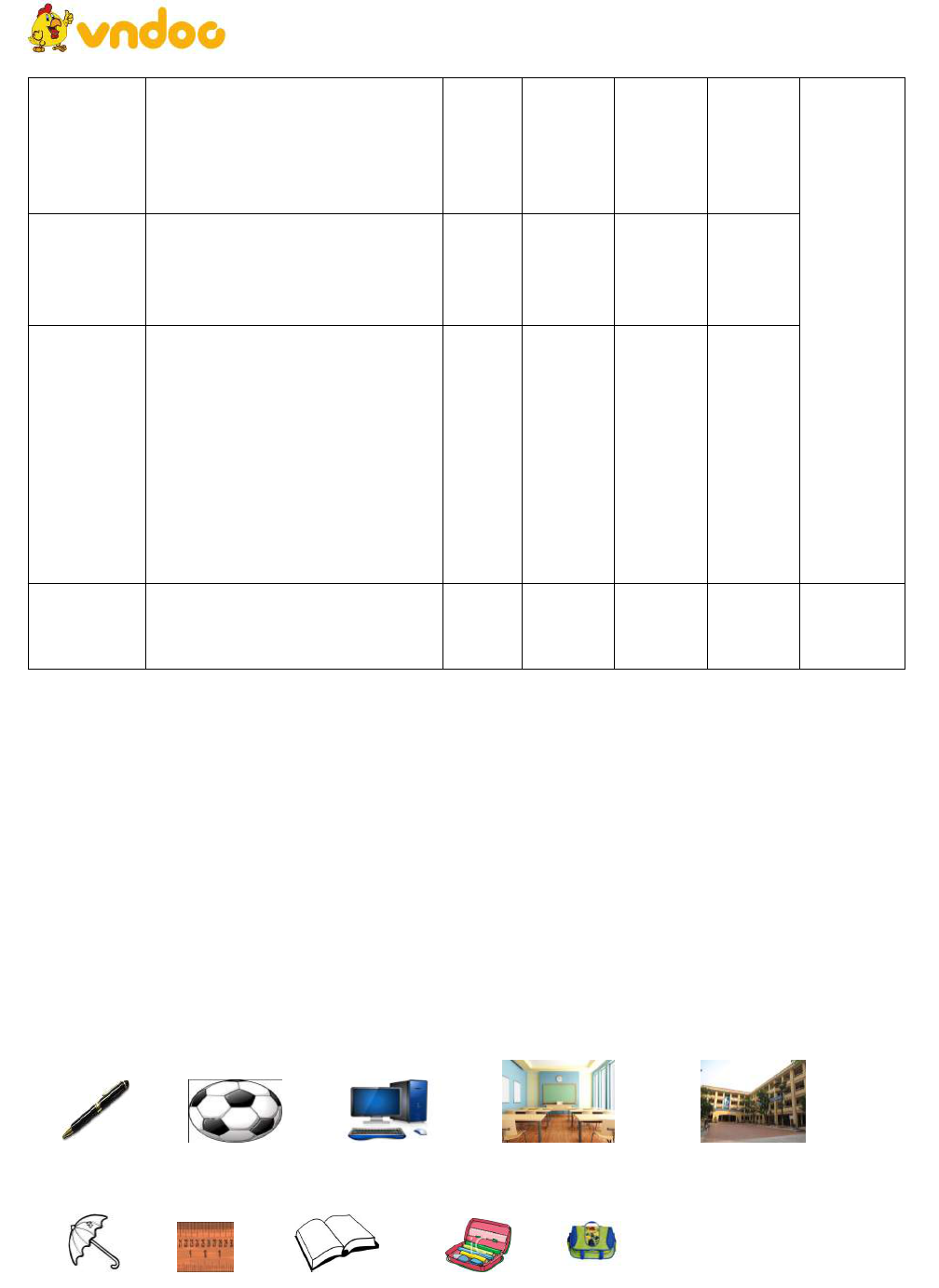 Đề thi học kì 1 lớp 3 môn tiếng Anh Chương trình mới trường Tiểu học Hoa Lộc, Thanh Hóa