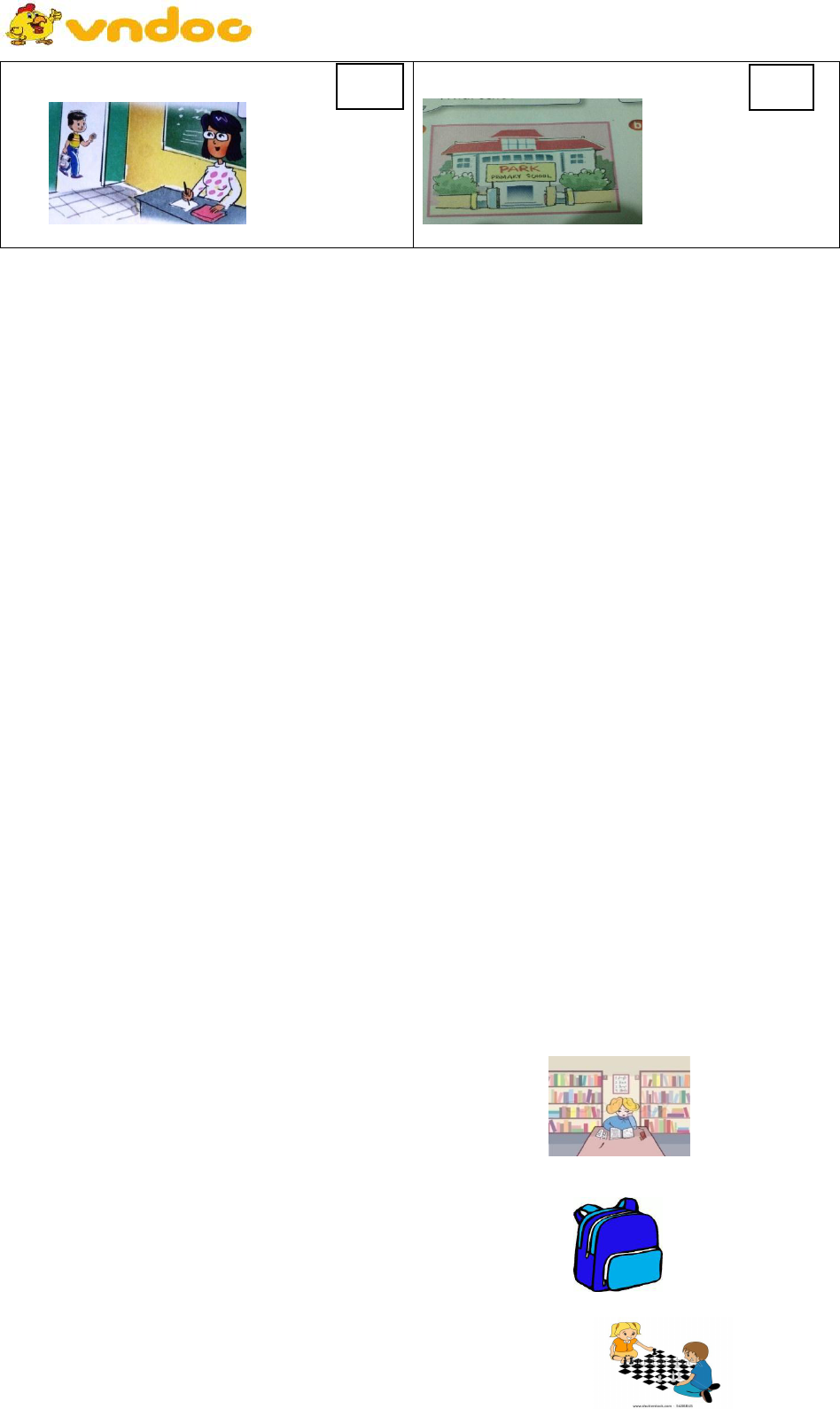 Đề thi học kì 1 môn Tiếng Anh lớp 3 trường Tiểu học Duy Phiên, Vĩnh Phúc năm học 2018 - 2019 có file nghe và đáp án dưới đây nằm trong bộ đề thi học kì 1 lớp 3 năm học 2018 - 2019 do VnDoc.com tổng hợp và đăng tải. Đề kiểm tra Tiếng Anh gồm nhiều dạng bài tập Tiếng Anh khác nhau thường có trong các kỳ thi quan trọng, giúp học sinh lớp 3 rèn luyện những kỹ năng làm bài thi hiệu quả.