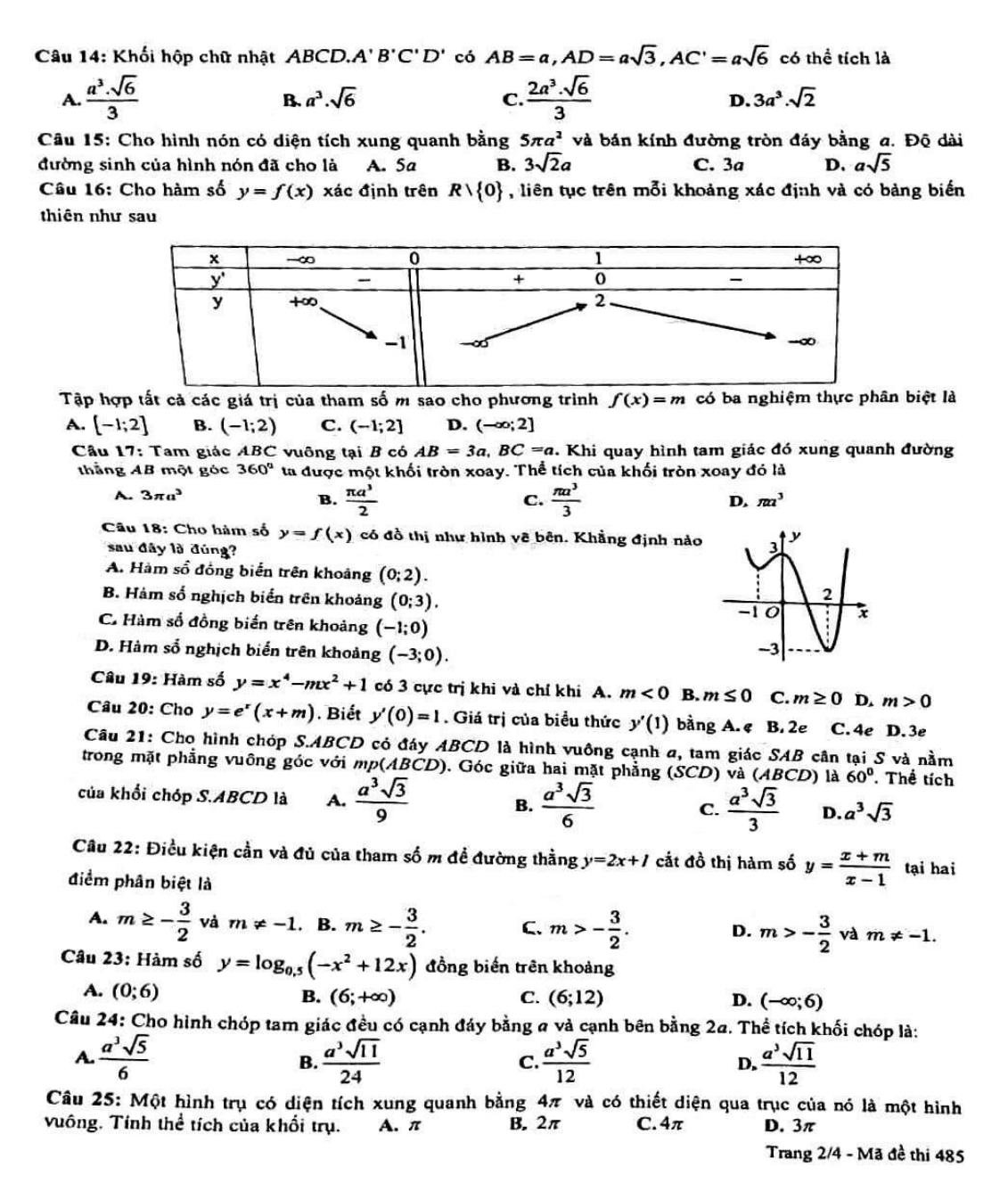 Đề thi học kì 1 lớp 12 môn Toán