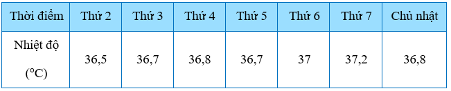 Câu 11. Thân nhiệt (°C) của bạn An trong cùng khung giờ 7h sáng các ngày trong tuần được ghi lại trong bảng sau: