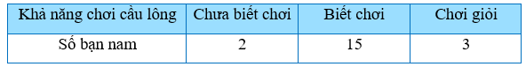 Câu 12. Kết quả tìm hiểu về khả năng chơi cầu lông của các bạn học sinh nam lớp 7C cho bởi bảng thống kê sau: