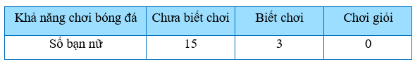 Kết quả tìm hiểu về khả năng chơi bóng đá của các bạn học sinh nữ của lớp 7C được cho bởi bảng thống kê sau: