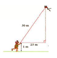 b) Một bạn học sinh thả diều ngoài đồng, cho biết đoạn dây diều từ tay bạn đến diều dài 50mvà bạn đứng cách nơi diều được thả lên theo phương thẳng đứng là Tính độ cao của con diều so với mặt đất, biết tay bạn học sinh cách mặt đất 1m. (kết quả làm tròn đến phần mười.)
