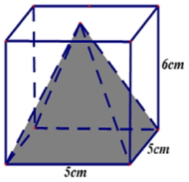 Câu 10 (TH). Thể tích của hình chóp tứ giác ở bên trong hình hộp chữ nhật với kích thước như hình vẽ là: