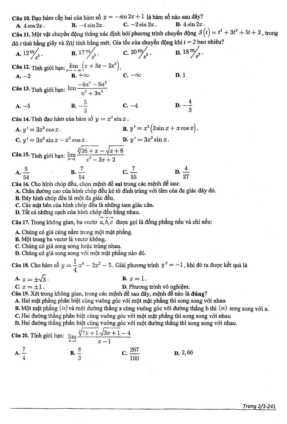 - Đề thi học kì 2 lớp 11 môn Toán trắc nghiệm có đáp án