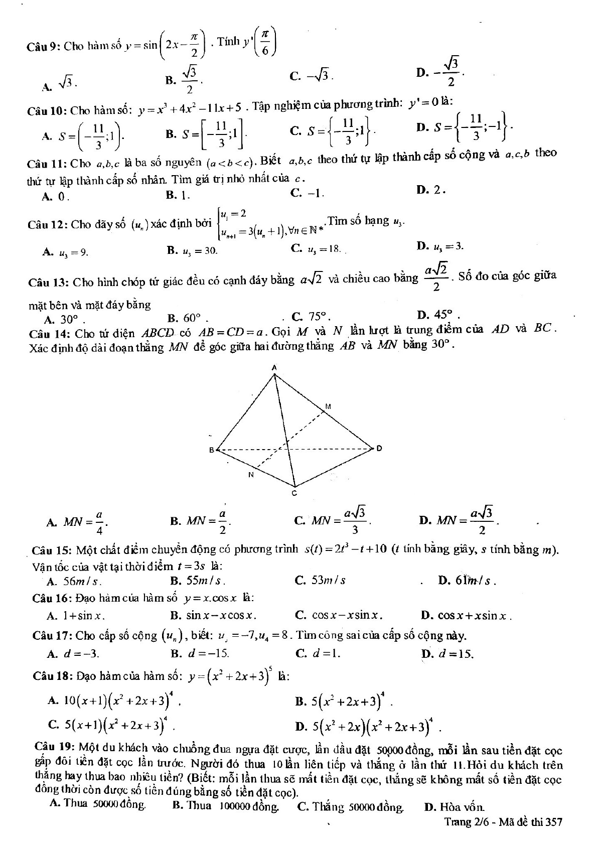 - Đề thi học kì 2 lớp 11 môn Toán năm 2018 - 2019 trường THPT Triệu Quang Phục - Hưng Yên