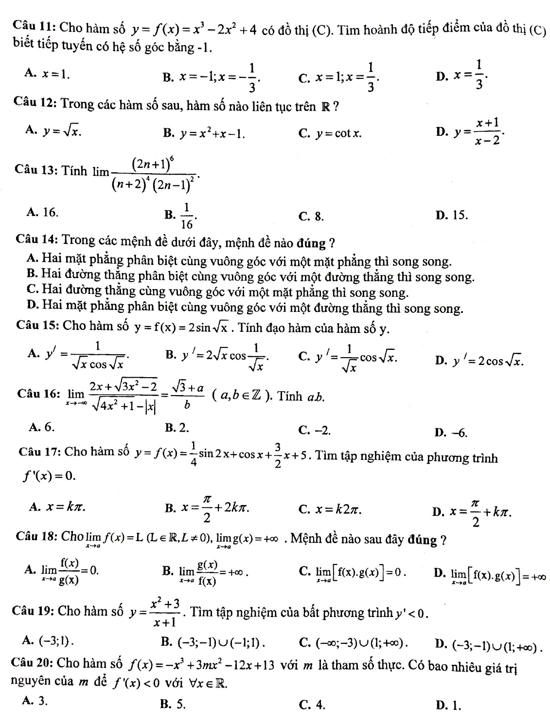 - Đề thi giữa học kì 2 lớp 11 môn Toán năm 2018 - 2019 trường THPT Yên Phong 2 - Bắc Ninh