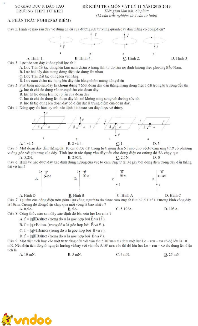 - Đề thi giữa học kì 2 lớp 11 môn Vật lý năm 2018 - 2019 trường THPT Trần Phú - TP. Hồ Chí Minh