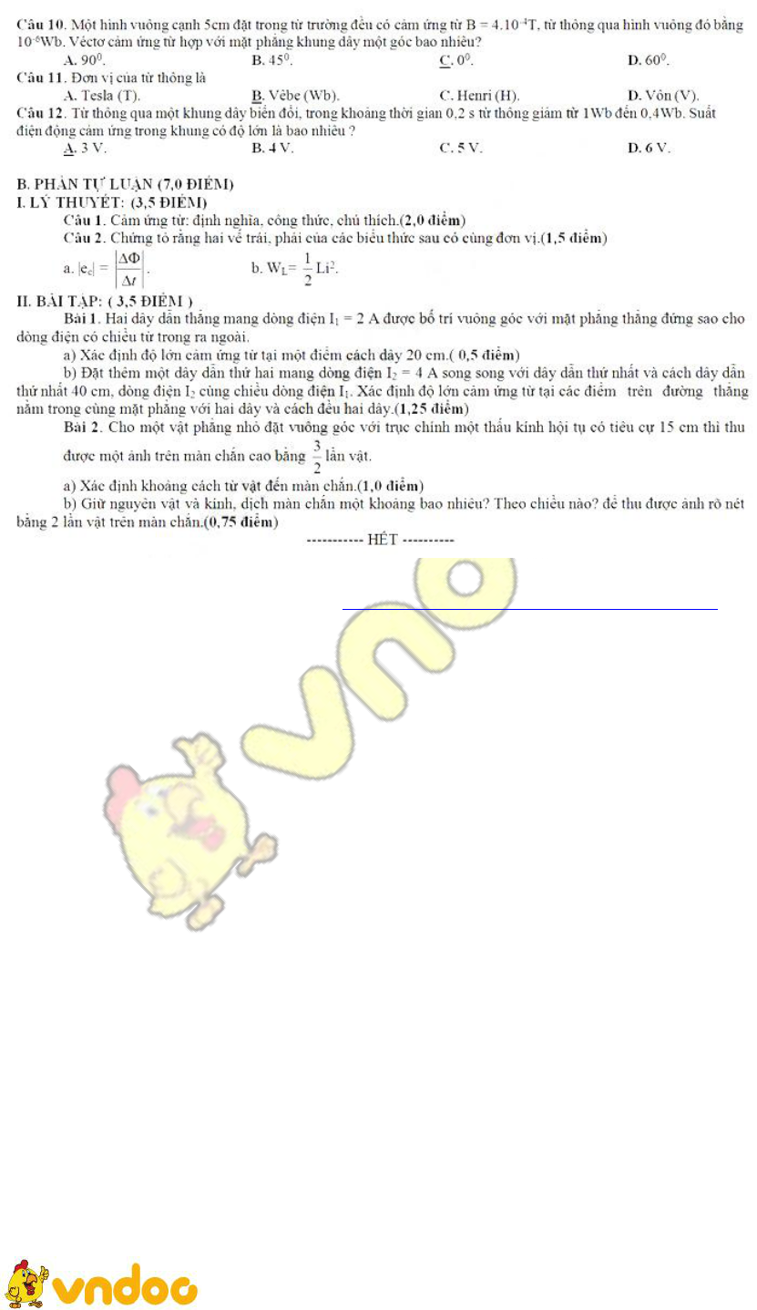 Đề thi học kì 2 môn Vật lý lớp 11
