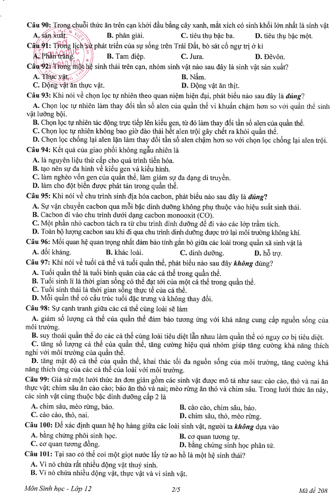 - Đề thi học kì 2 lớp 12 môn Sinh học năm 2018 - 2019 Sở GD&ĐT Thanh Hóa