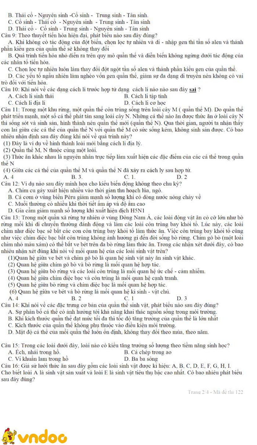 - Đề thi học kì 2 lớp 12 môn Sinh học năm 2018 - 2019 Sở GD&ĐT Thanh Hóa