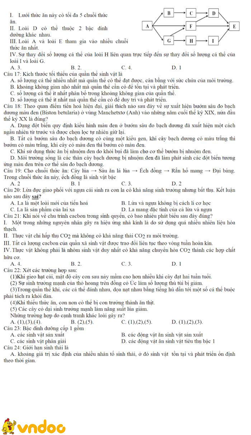 - Đề thi học kì 2 lớp 12 môn Sinh học năm 2018 - 2019 trường THPT Yên Lạc 2 - Vĩnh Phúc