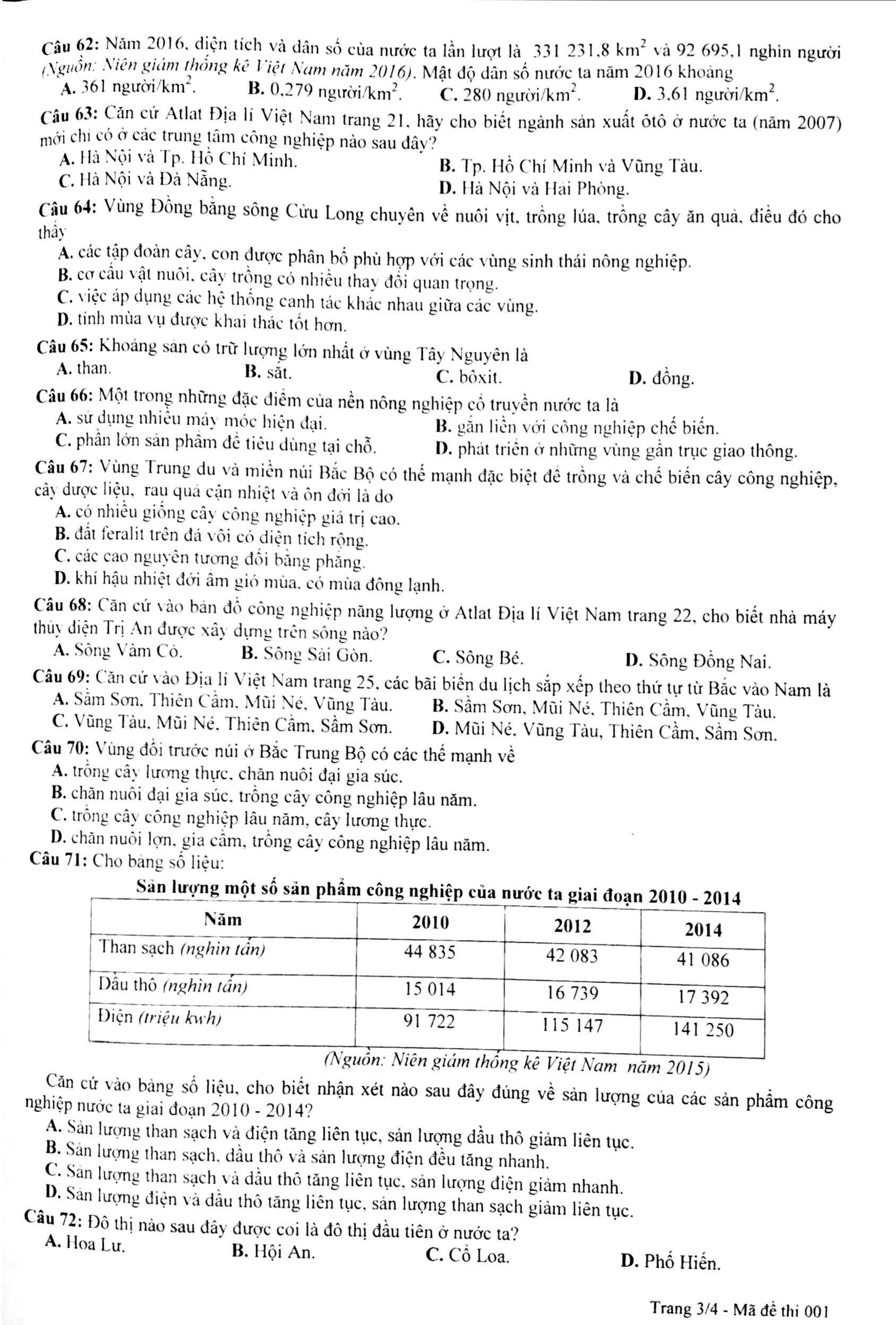 Đề khảo sát chất lượng môn Địa lí lớp 12 năm 2017 - 2018 trường THPT Yên Lạc - Vĩnh Phúc (Lần 1)