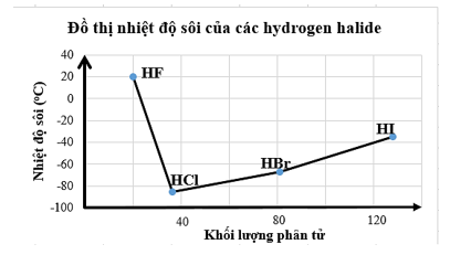 Câu 17. Biểu đồ sau biểu diễn nhiệt độ sôi của các hydrogen halide