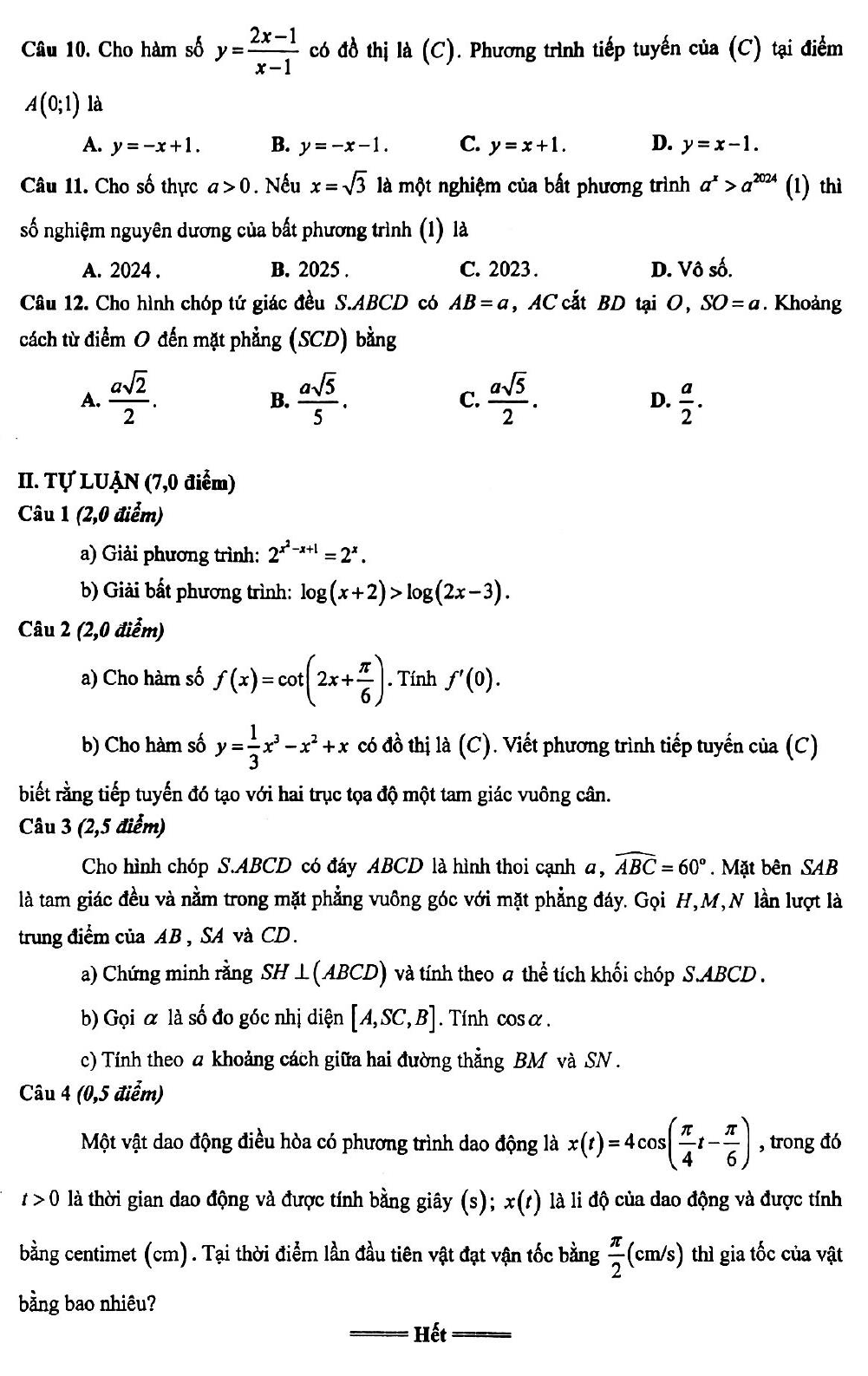 Đề thi học kì 2 môn Toán 11 Sở GD&ĐT Bắc Ninh năm 2024