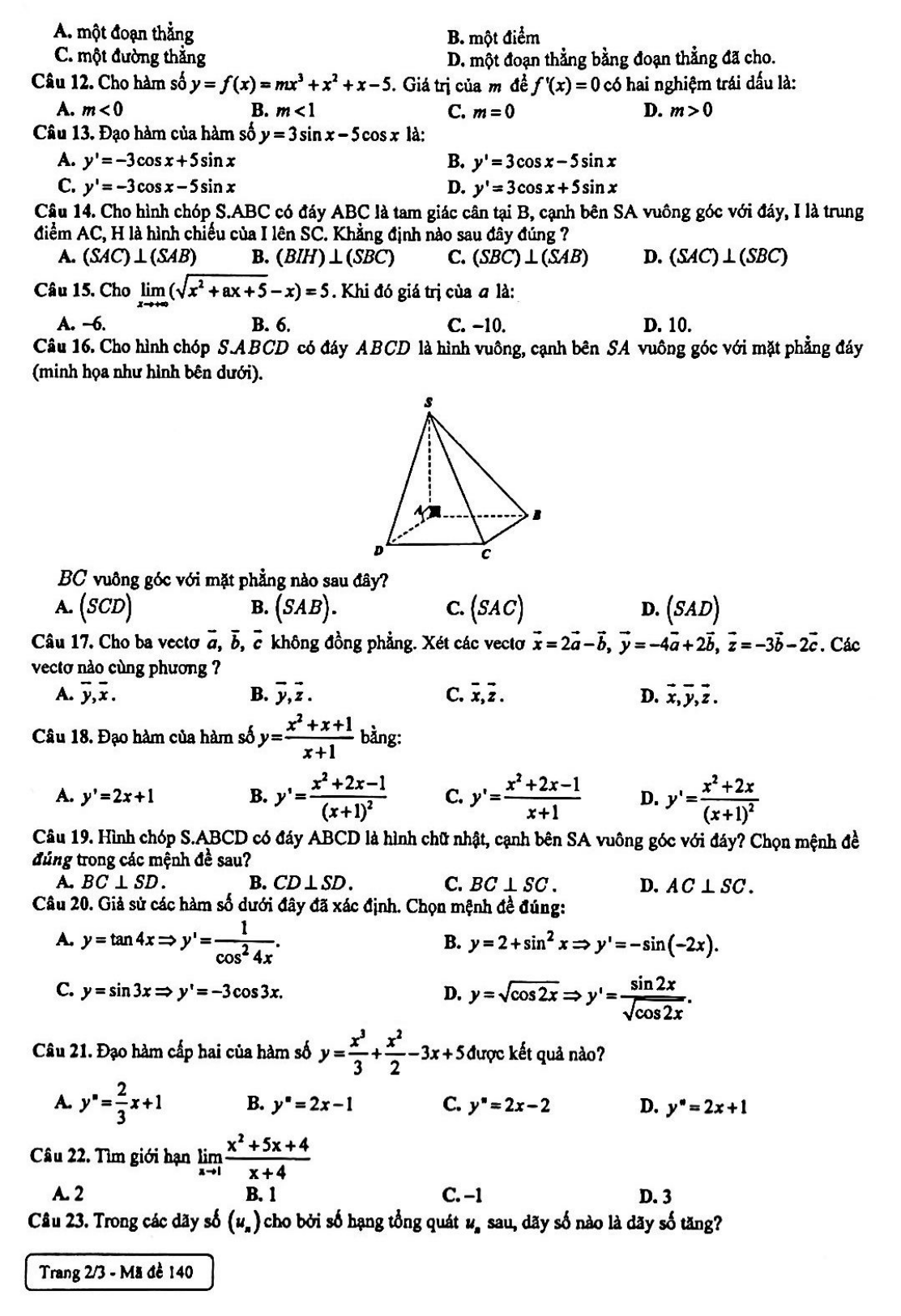 Đề thi học kì 2 môn Toán lớp 11 Sở GD&ĐT Bình Phước năm 2021