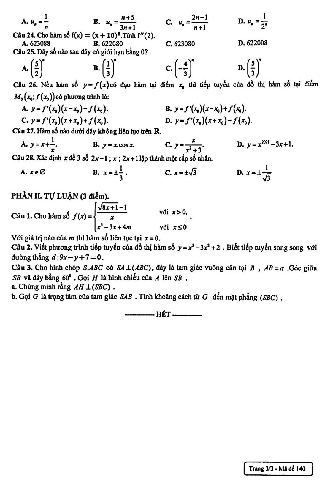 - Đề thi học kì 2 môn Toán lớp 11 Sở GDKHCN Bạc Liêu năm 2020-2021