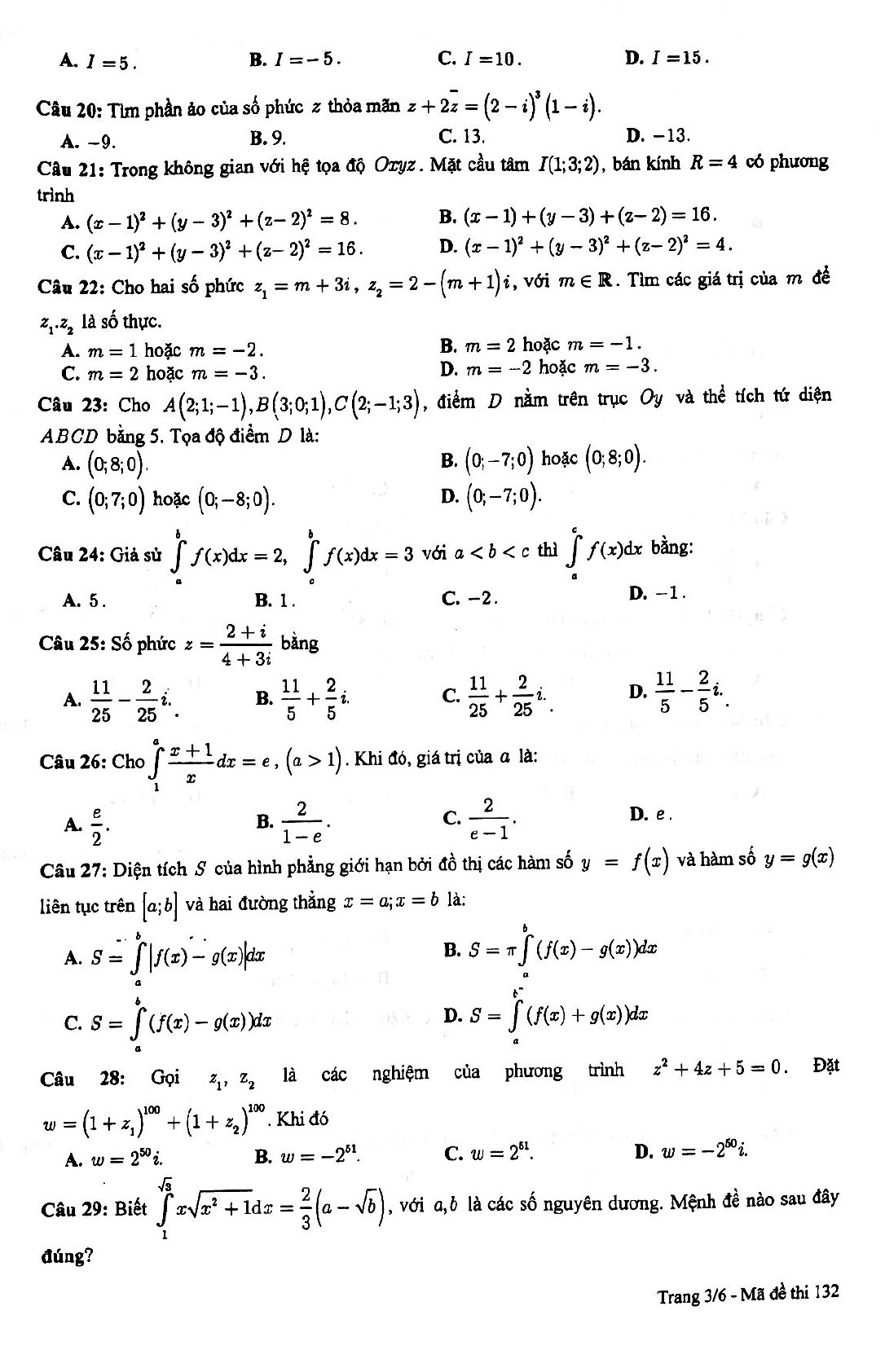 VnDoc mời bạn đọc tham khảo Đề thi học kì 2 môn Toán lớp 12 năm 2017 - 2018 Sở GD&ĐT Bến Tre, nội dung tài liệu gồm 50 câu hỏi, thí sinh làm bài trong khoảng thời gian 90 phút, đề thi nhằm kiểm tra các nội dung kiến thức: nguyên hàm - tích phân và ứng dụng, số phức và hình học Oxyz, đề thi HK2 Toán 12 có đáp án.
