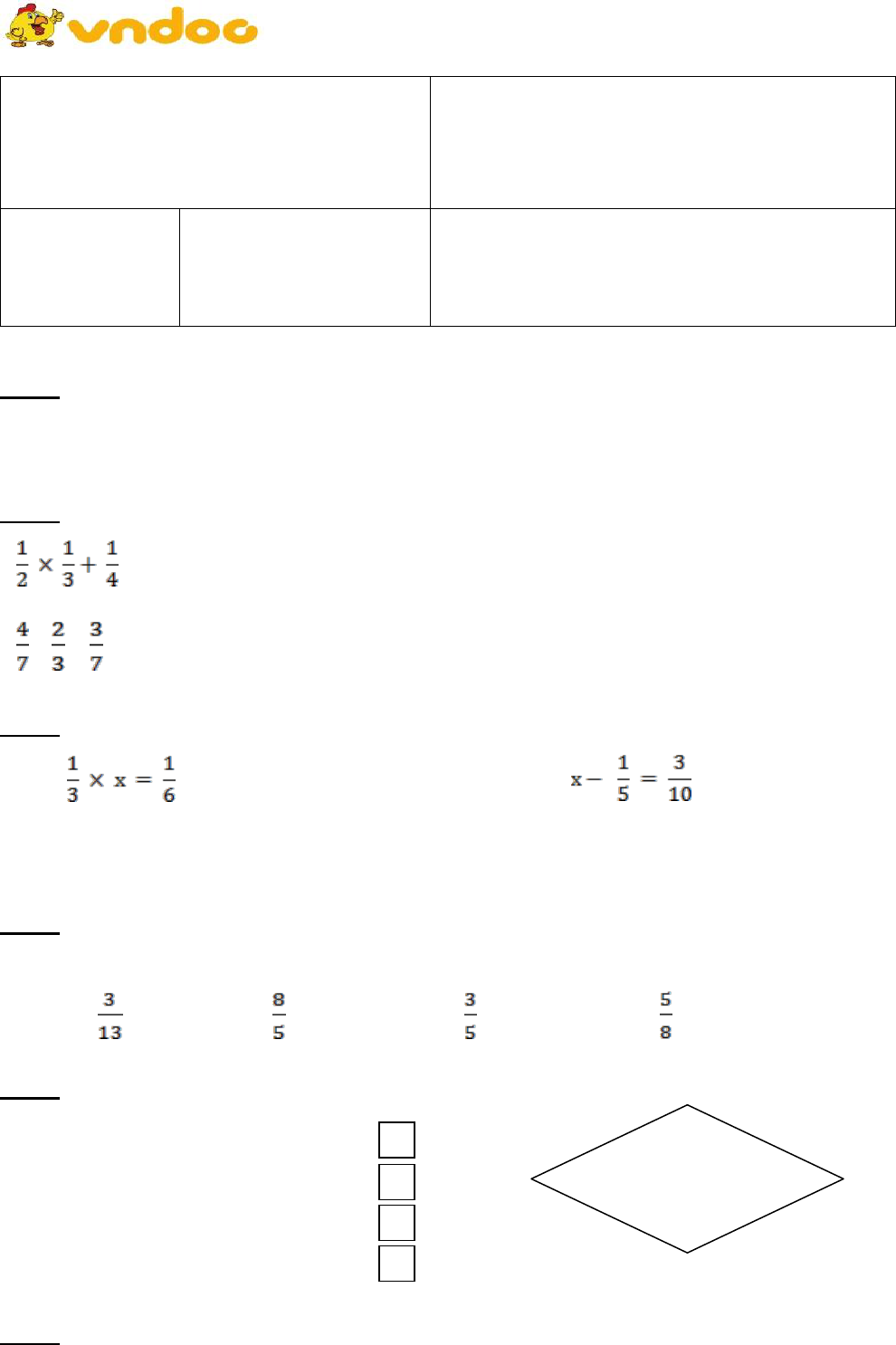 Đề kiểm tra học kì 2 môn Toán lớp 4