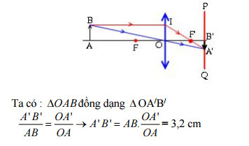 Câu 5: (2 điểm) Một người cao 1,6 m được chụp ảnh và đứng cách vật kính của máy ảnh là 3m. Phim cách vật kính 6 cm. Hỏi người ấy trên phim cao bao nhiêu xen-ti– mét?