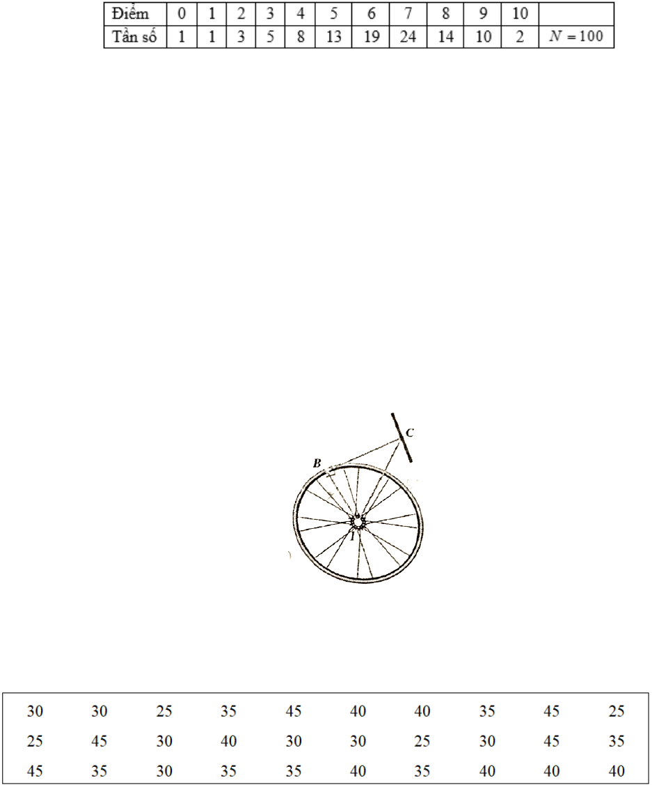 Câu 1. Cho bảng số liệu điểm kiểm tra cuối học kỳ 2 môn Hóa của 40 học sinh lớp 10A như sau: (thang điểm