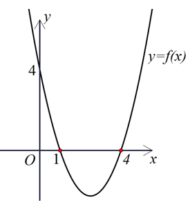 Nhìn đồ thị, ta thấy đồ thị y = f(x) cắt trục hoành tại 2 điểm x = 1, x = 4 nên Δ > 0, dựa vào hình dạng parabol nên suy a > 0