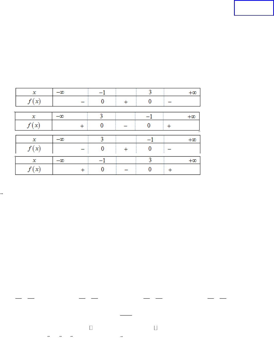 Câu 2. Bảng xét dấu nào sau đây là của tam thức