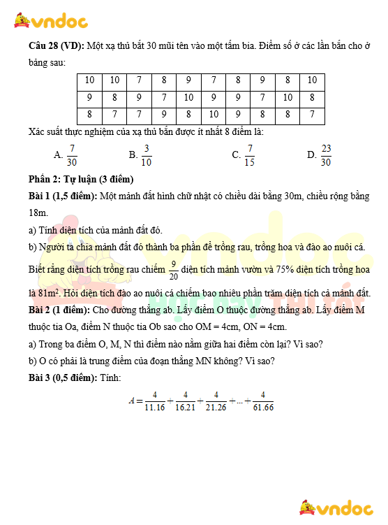 Tham khảo thêm: Đề thi học kì 2 Toán 6 Cánh diều - Đề số 2