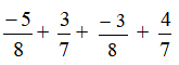 \(\frac{-5}{8} + \frac{3}{7}+\frac{-3}{8} + \frac{4}{7}\)