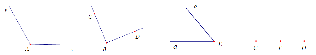 b) (1,0 điểm)-(NB)-Hãy xác định góc nhọn, góc vuông, góc tù, góc bẹt trong các góc trên.