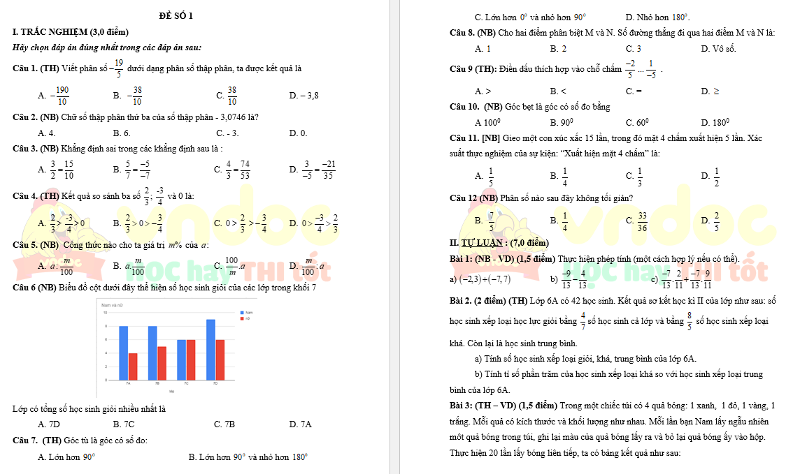 Đề kiểm tra học kì 2 Toán 6 Kết nối tri thức năm 2023 - 2024 Đề số 1 do VnDoc biên soạn, có đầy đủ đáp án cho các em tham khảo luyện tập. Đề thi dưới đây bám sát chương trình học có đáp án và bảng ma trận để các em học sinh cùng củng cố chuẩn bị cho bài thi học kì 2 lớp 6.