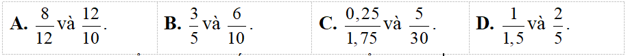 Câu 2 (NB). Trong các cặp tỉ số sau, cặp tỉ số nào lập thành một tỉ lệ thức?