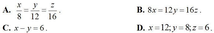 Câu 2. Biết 7x = 4y và y – x = 24. Khi đó, giá trị của x, y là