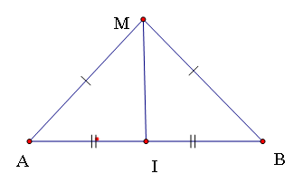 Câu 22 (NB). Gọi I là trung điểm của đoạn thẳng AB, M là điểm không nằm trên AB sao cho MA = MB (tham khảo hình vẽ). Khi đó:
