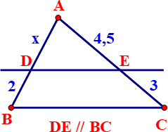 Câu 10: Cho hình vẽ dưới đây biết DE // BC. Độ dài x là