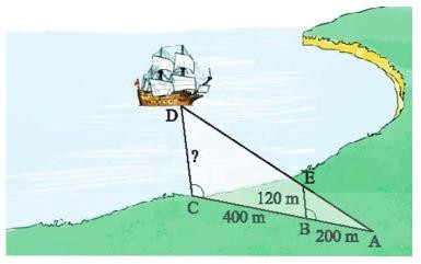 Bài 3. (0,5 điểm). Với số liệu được ghi trên hình vẽ bên dưới. Tính khoảng cách CD từ con tàu đến trạm quan trắc đặt tại điểm C.