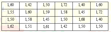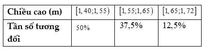Câu 8: <NB> Kết quả điều tra cân nặng của một số học sinh lớp 9 được ghi lại trong bảng sau: