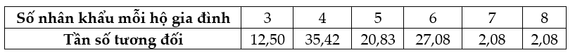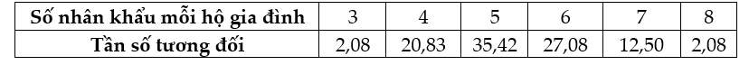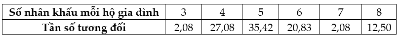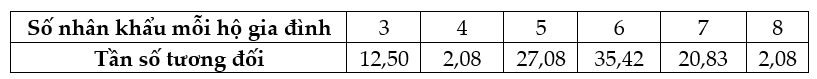 Câu 6 <TH> Sau khi điều tra 48 hộ gia đình ở vùng dân cư về số nhân khẩu của mỗi hộ gia đình, người ta được dãy số liệu sau: