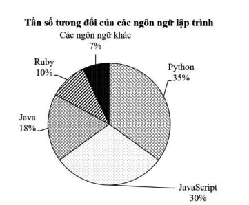 Câu 8 (NB). Biểu đồ hình quạt tròn dưới đây biểu diễn tần số tương đối của các ngôn ngữ lập trình được sử dụng khi viết 200 phần mềm của một công ty công nghệ.
